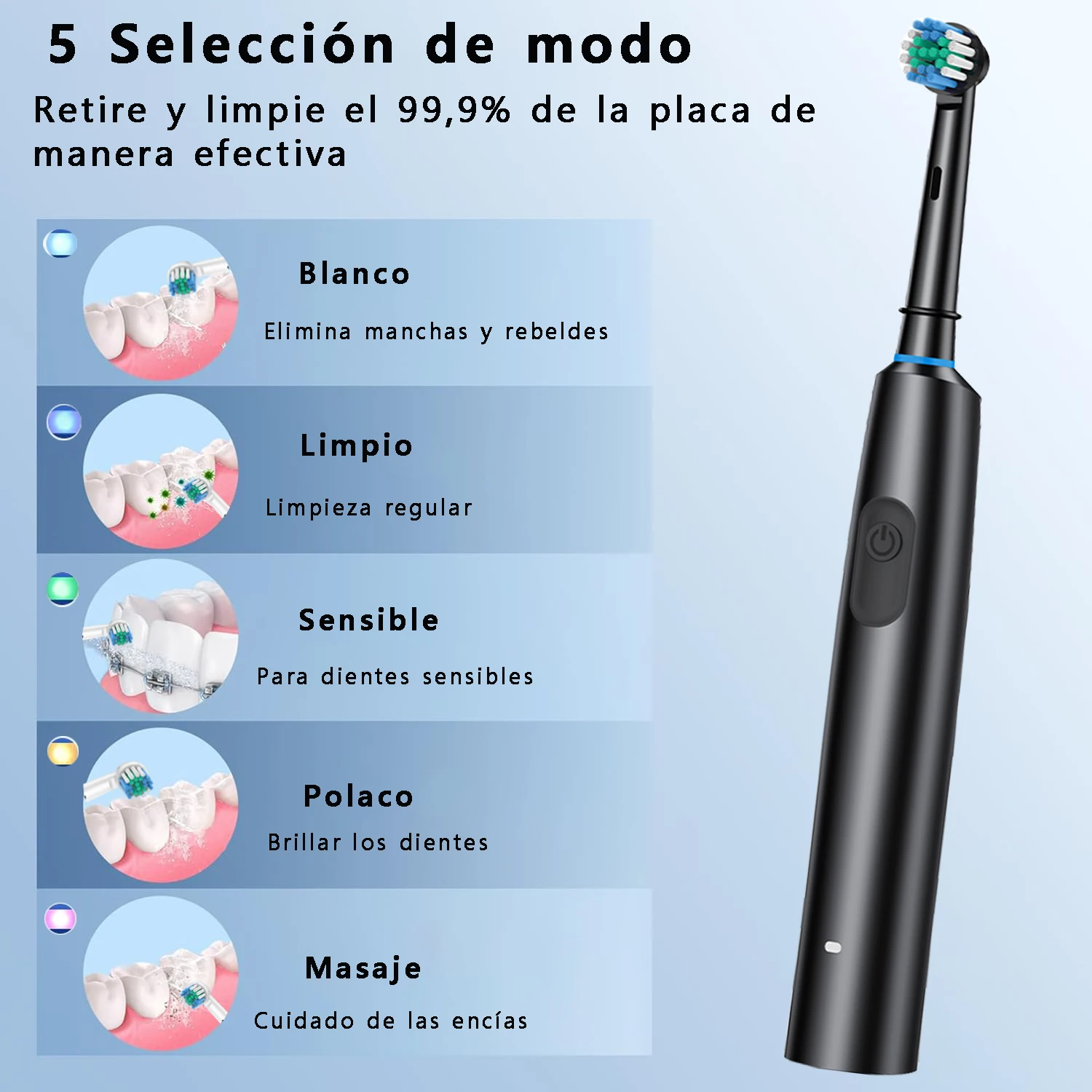TÍTULO: Cepillo de Dientes Eléctrico Giratorio 5 Modos — 8 Cabezales, 30 Días Batería, IPX7