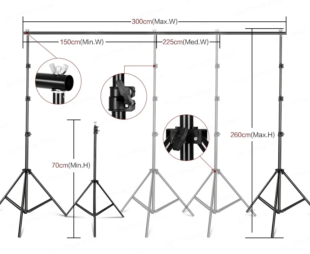 - Soporte de fondo ajustable 79–200cm
