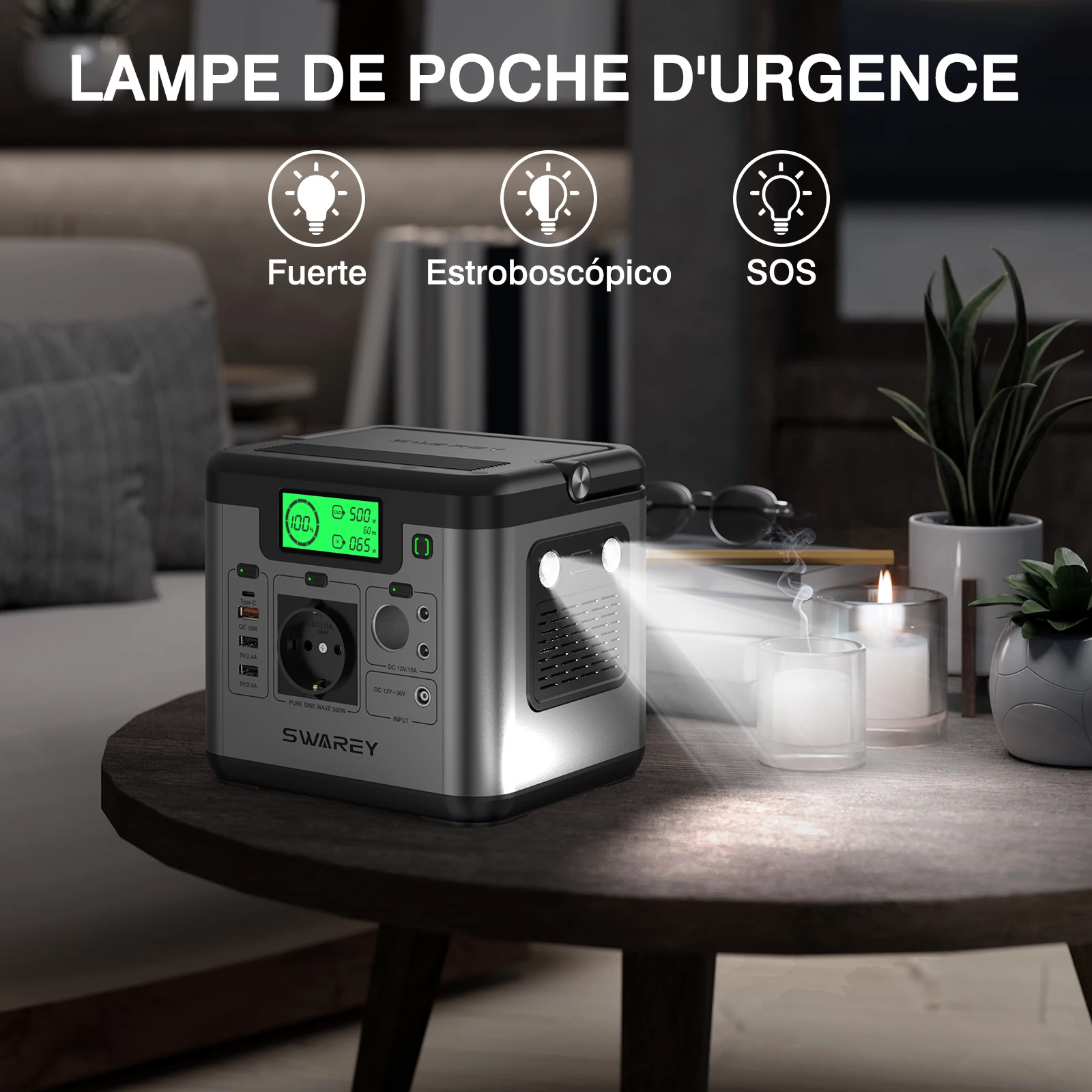 Kit SWAREY S500 Pro 518Wh + Panel Solar 100W — Generador Portátil, Onda Sinusoidal Pura